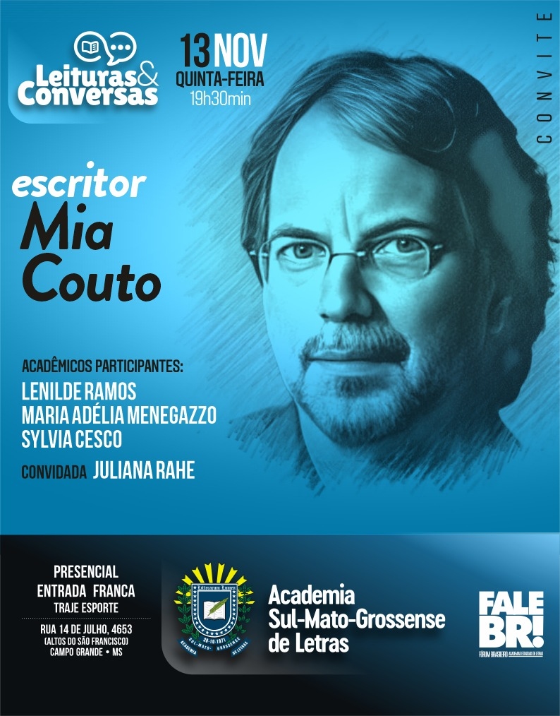 A Academia Sul-Mato-Grossense de Letras (ASL) realizará nesta quinta-feira, 13 de novembro, às 19h30, a última edição de 2025 do programa “Leituras & Conversas”, com foco na obra do escritor moçambicano Mia Couto. O evento será presencial, com entrada gratuita, no auditório da instituição, localizado na Rua 14 de Julho, nº 4653, bairro Altos do São Francisco, em Campo Grande (MS).
