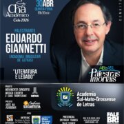 A Academia Sul-Mato-Grossense de Letras realiza seu primeiro Chá Acadêmico do ano na ASL nesta quinta-feira, dia 30, com o imortal Eduardo Giannetti, da Academia Brasileira de Letras, abrindo o ciclo 2026 do projeto “ABL na ASL: Palestras Imortais” ─ que é desenvolvido em parceria entre a ASL e o Governo do Estado, por meio da Setesc – Secretaria de Turismo, Esporte e Cultura – e da Fundação de Cultura de Mato Grosso do Sul (FCMS). O evento será às 19h30min, presencial e com entrada franca no auditório da ASL, na rua 14 de Julho, 4653, em Campo Grande.